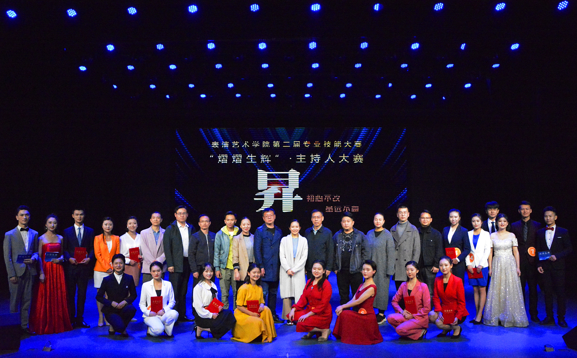 2019年11月13号晚7点,表演艺术学院第二届专业技能大赛“熠熠生辉·昇”主持人大赛在风华楼剧场举行。出席本次大赛的领导老师有江汉艺术职业学院党委办公室主任廖兆泉老师,江汉艺术职业学院党委办公室主任刘海燕老师,表演艺术学院院长胡文婷老师,副院长梁莹、张萌萌老师,校团委副书记金彩云老师,教育学院副院长郝艳亮老师。除此之外,本场晚会还有特邀嘉宾,潜江市广告协会会长尹巍,微聚影视传媒公司董事长吴凯,微聚影视传媒公司CEO阮飞刚。 本场大赛的专业评委老师有高耀老师、焦浩展老师、刘海燕老师、李洁老师。