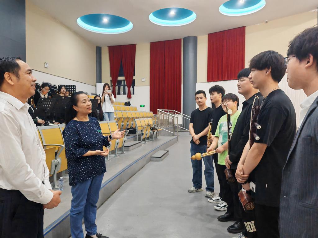 程伦嵩强调,要切实提高政治站位和思想认识,充分发挥教师队伍“主力军”、课程建设“主战场”、课堂教学“主渠道”作用。“要深入挖掘音乐作品的思政元素,将其有机融入到专业教学,发挥音乐作品在精神层面的感染力。”