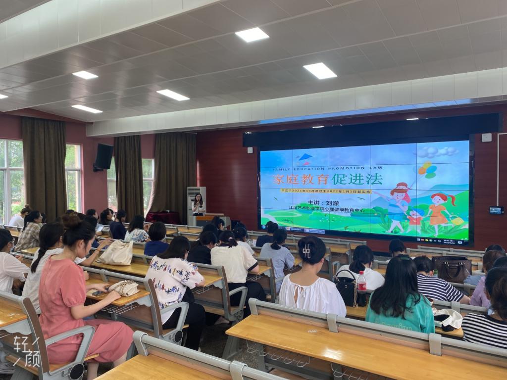 5月30日下午,江汉艺术职业学院女工委开展了一场别具意义的家庭教育讲座。讲座开始之前向老师们发放了家庭教育促进法十问十答宣传单,接着潜江市家庭教育专家刘濛老师为老师们普及了《家庭教育促进法》,市家庭教育专家金道日娜老师为老师们解读并学习了《细化监护人在家庭教育中的职责》,老师们纷纷表示获益良多。
