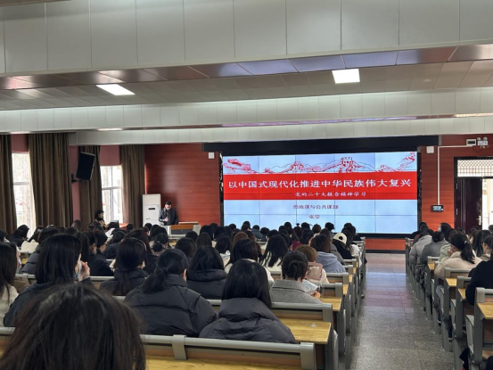3月2日下午2:30,组织全院女教职工在综200教室集中学习党的二十大精神。