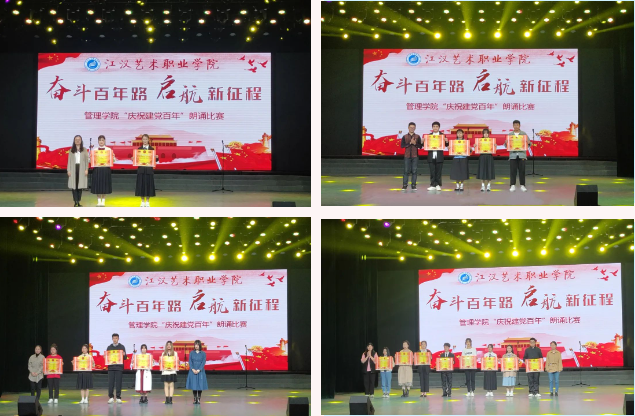 颗颗红心,向党献礼!清澈的爱,只为祖国!为庆祝建党一百周年,4月24日晚,管理学院在大礼堂举行了“奋斗百年路,启航新征程”朗诵比赛。