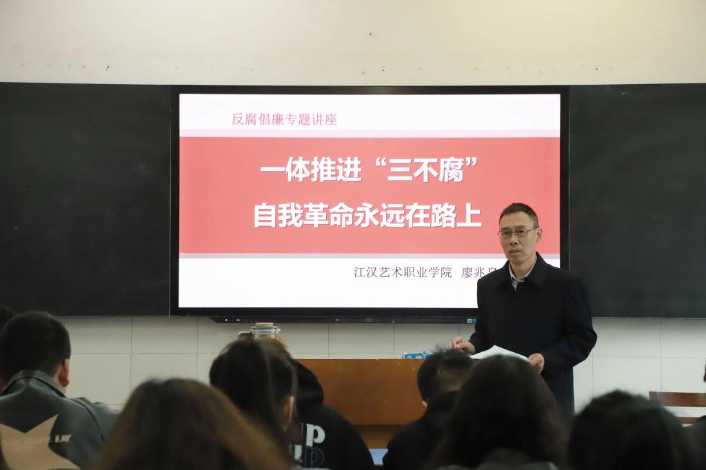 廖教授以《一体推进三不腐,自我革命在路上》为主题,从“三不腐”是反腐败斗争的有效机制、一体推进“三不腐”的实践思考、自我革命跳出历史周期律的第二个答案、党的自我革命永远在路上四个层面深入分析了党的自我革命、全面从严治党和高校的反腐败工作。