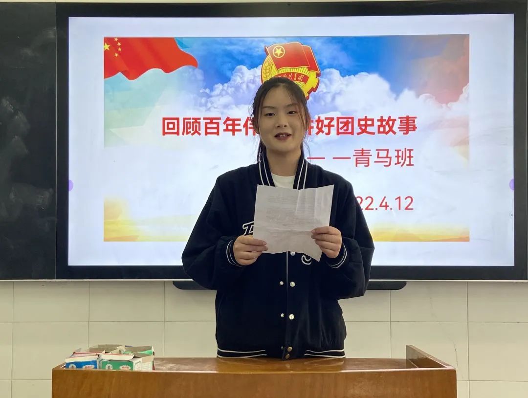 同学们以演讲和观看视频相结合的方式,向大家介绍了共青团的发展历程。他们用质朴的语言、平凡的视角、生动的故事、真实的情感,讲述了中华民族实现从站起来、富起来到强起来的三次历史性飞跃。整场活动中,大家畅所欲言,用自己对团史的理解和感悟互相交流。
