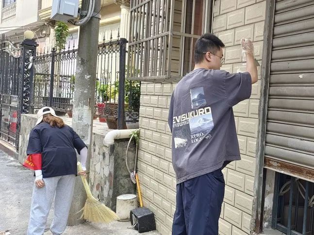 伴随着太阳的升起,志愿者服务队在操场集合完毕。社区工作人员分别给大家发放劳动工具:扫帚、撮箕、喷壶和铲子,待劳动工具分发完后,同学们便踏上了前往各自辖区的“征途”。
