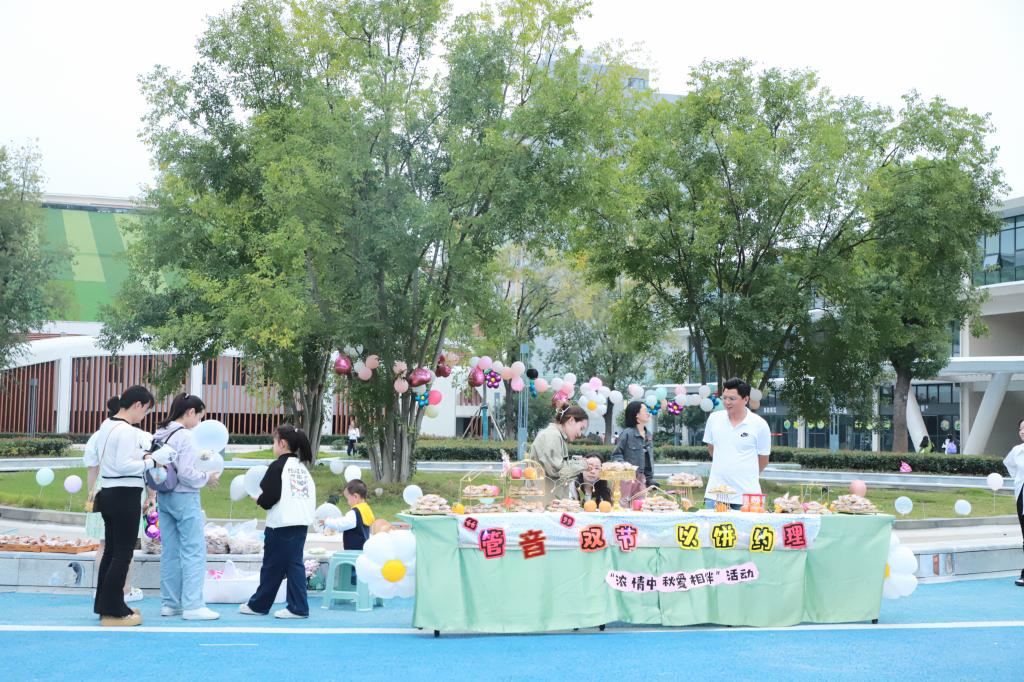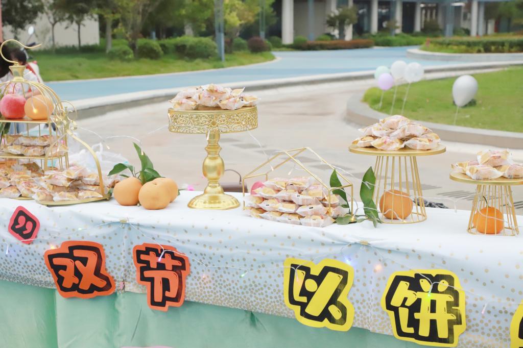 现场被布置得氛围感满满,一切已准备就绪,言语无法尽述的祝福都倾注在这一个个小小的月饼中,只为让未归家的学子们在学校也能感受到家的温暖。