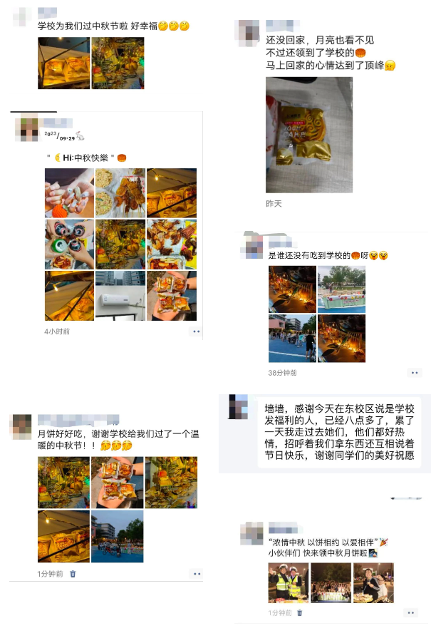 祝福抵达,送出去的爱意也有了暖心的回应。同学们纷纷表示“这次的活动现场好美。”“学校对我们的爱已经收到啦。”“老师与现场的同学们都好热情,满满的中秋祝福。”“月饼好好吃,谢谢学校为我们过了一个温暖的中秋节。”