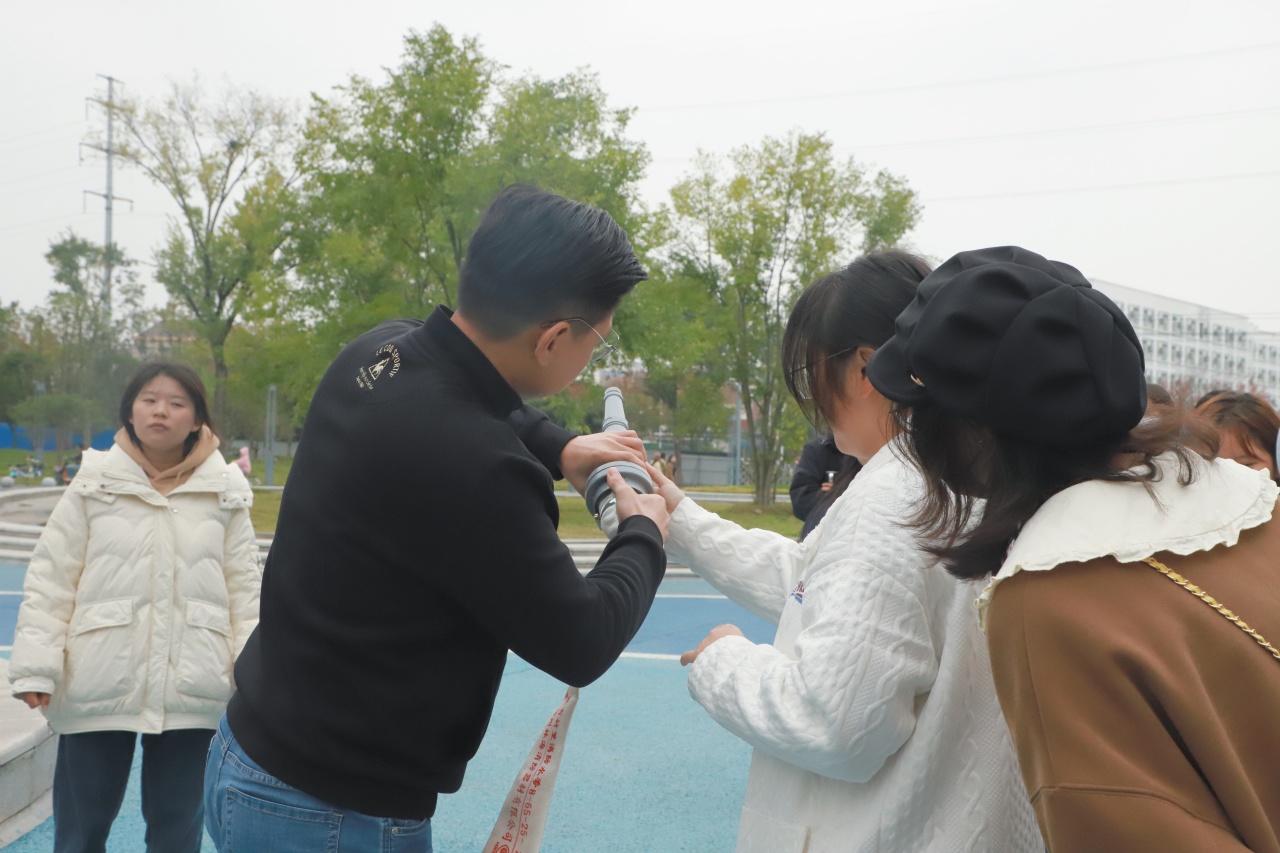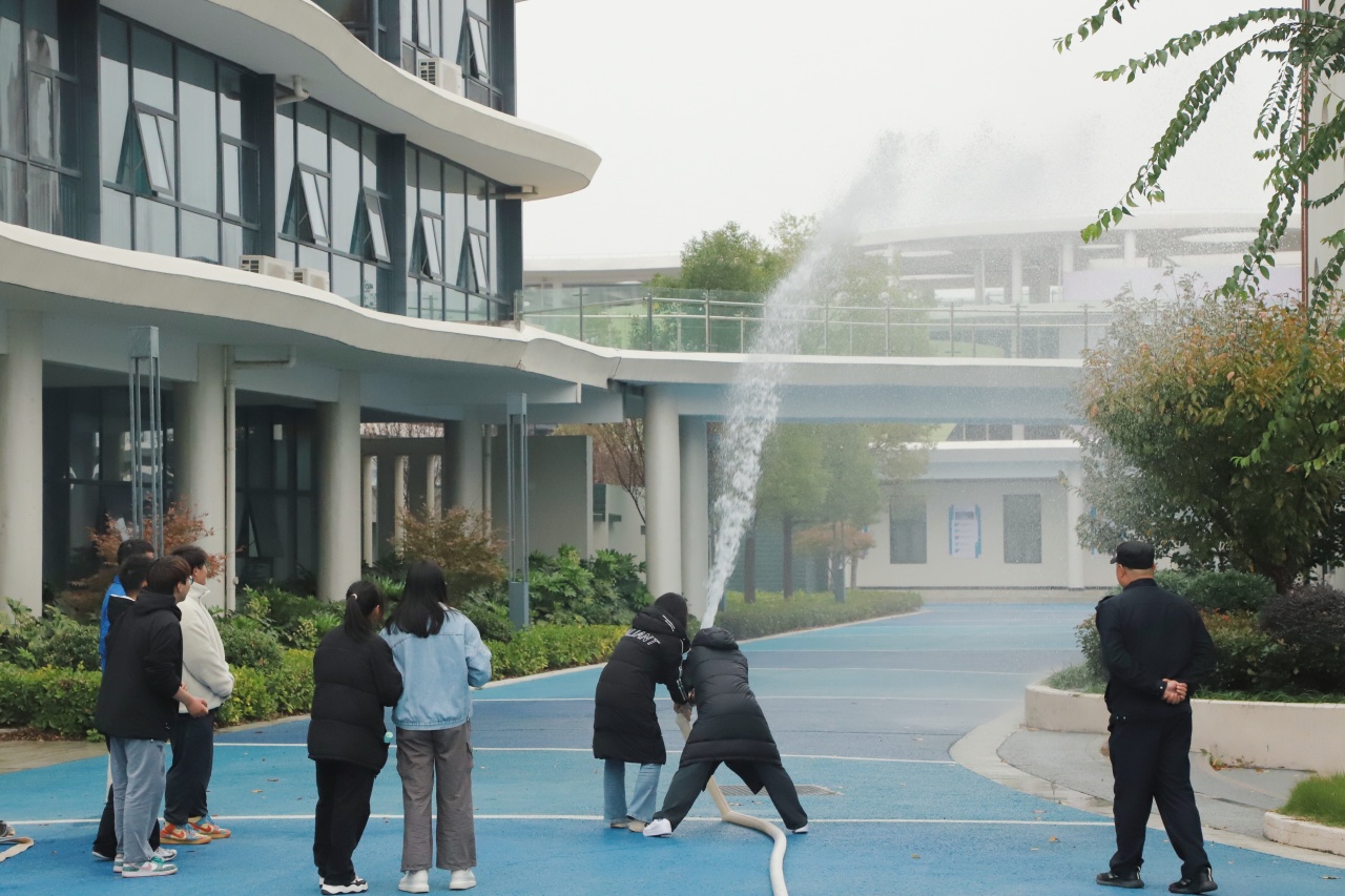 最后,老师现场为我们讲解了如何铺设消防水带以及如何正确使用消防栓。同学们按照讲解要求进行实地操作,清楚地掌握了消防栓的使用步骤。
