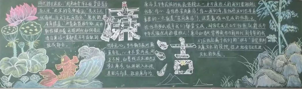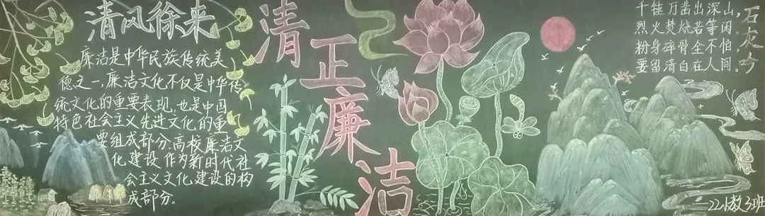 为了进一步深化“廉洁文化进校园”活动,让学生树立“廉洁光荣,腐败可耻”的意识,培养正确的价值观念和高尚的道德情操,我院特举办以“清风扫陋习,携德赋廉洁”为主题的黑板报评比活动。