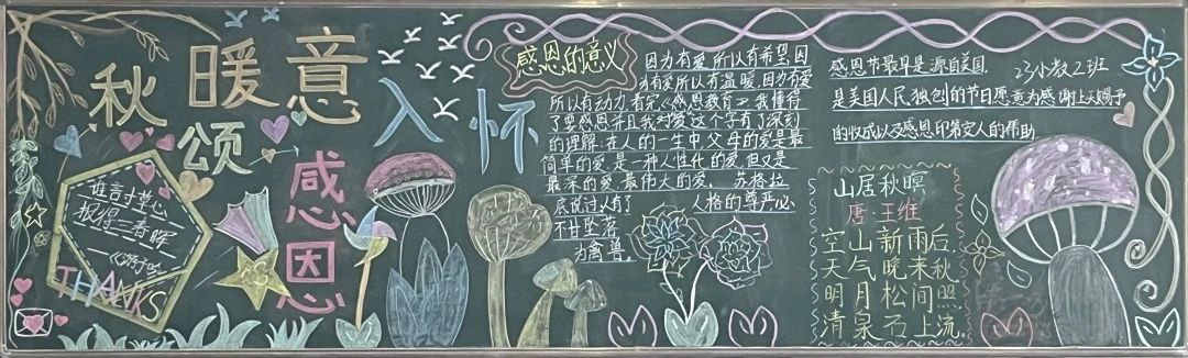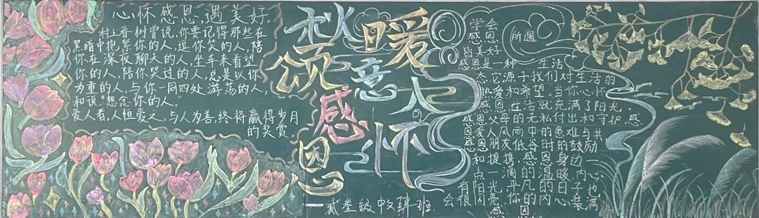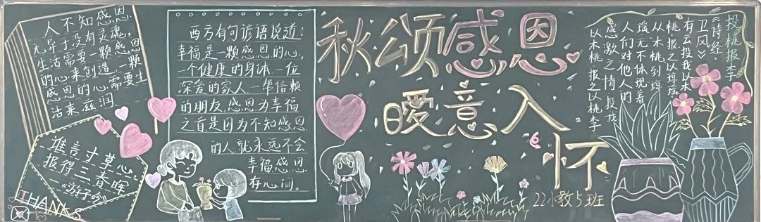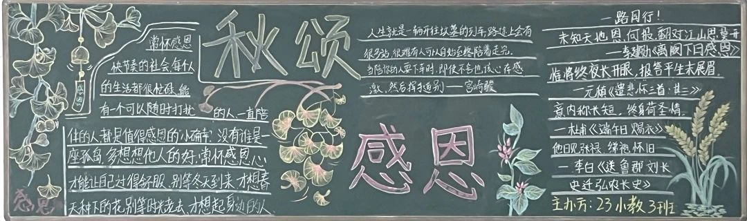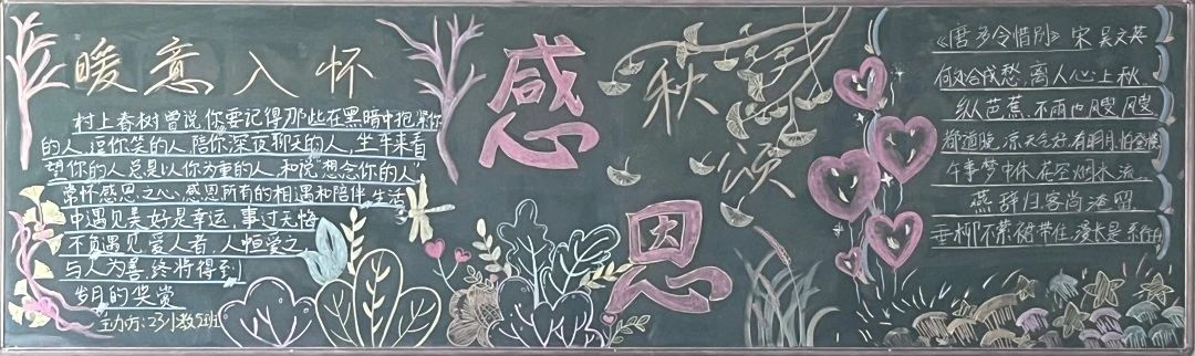 感恩是中华民族的传统美德,是维系情愫的条条纽带,是敲击人心的涓涓细流。为加强大学生的感恩教育,培养学生知恩图报、乐于助人的优良品德,管理学院于2023年11月28日开展了以“秋颂感恩,暖意入怀”为主题的黑板报评比活动。