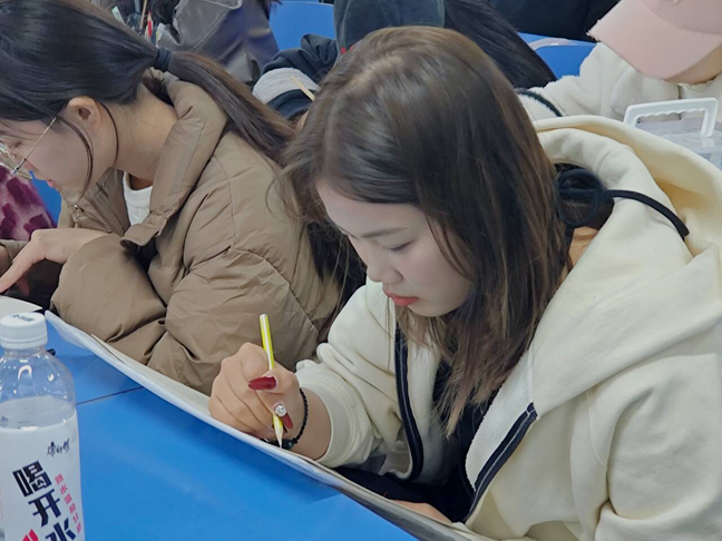 简笔画决赛于12月7日晚七点在北209举行。在决赛中,选手们全神贯注,运用流畅的线条娴熟地勾勒出一幅幅令人惊艳的图画。他们的笔画不仅清晰有力,而且布局巧妙,将画面组织得井然有序。