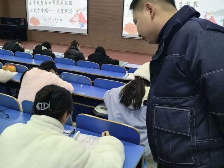 三笔字决赛于12月11日晚七点在8号报告厅举行。选手们用笔稳健、挥洒自如。字形端庄工整,字体美观,笔法精湛,一撇一捺都流露出独特的韵味,尽显笔墨风采,令人赞叹。