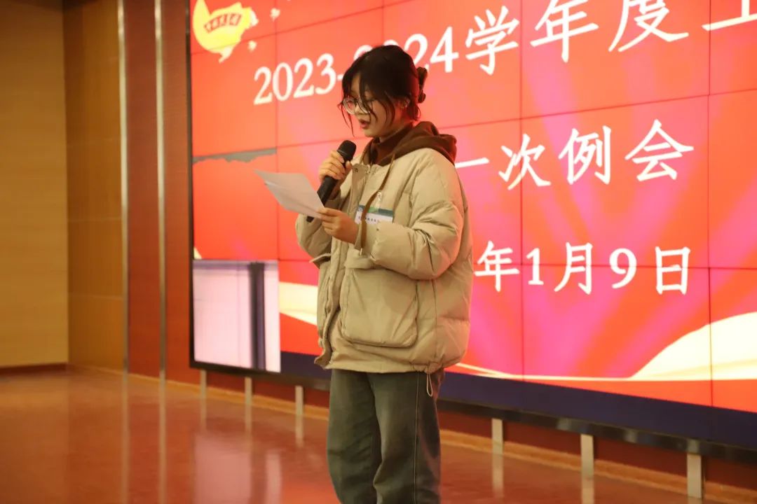 为加强管理学院学生会各部门之间的相互交流,引导成员们明确工作重点和方向,提高管理学院学生会总体工作能力和服务水平。我院于1月9日下午在2号报告厅召开了管理学院第十三届团总支学生会2023—2024学年度上学期第一次例会。会议开始,由主持人带领大家一起学习《学生会、研究生会干部自律公约》。集体学习旨在强调学生会成员应恪守学生本分、牢记学生会宗旨、永葆理想主义情怀、发挥好先锋模范作用、发扬求真务实的工作作风、积极遵守公约、不断充实自我、增强自身本领,得以更好地服务同学们。