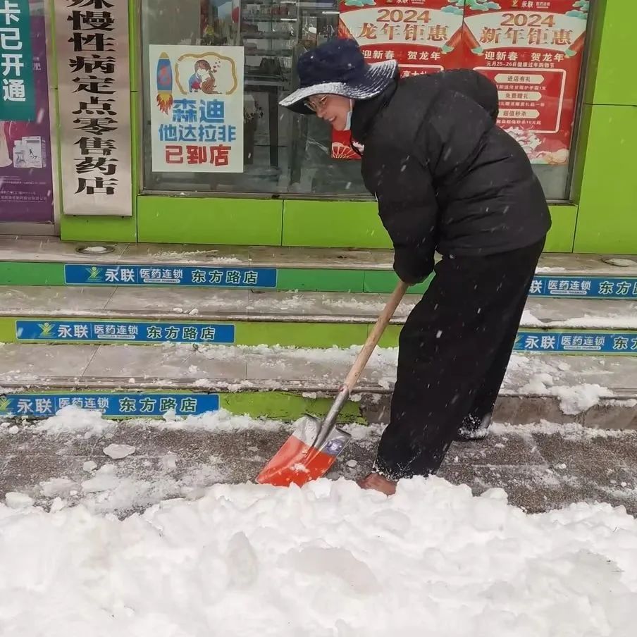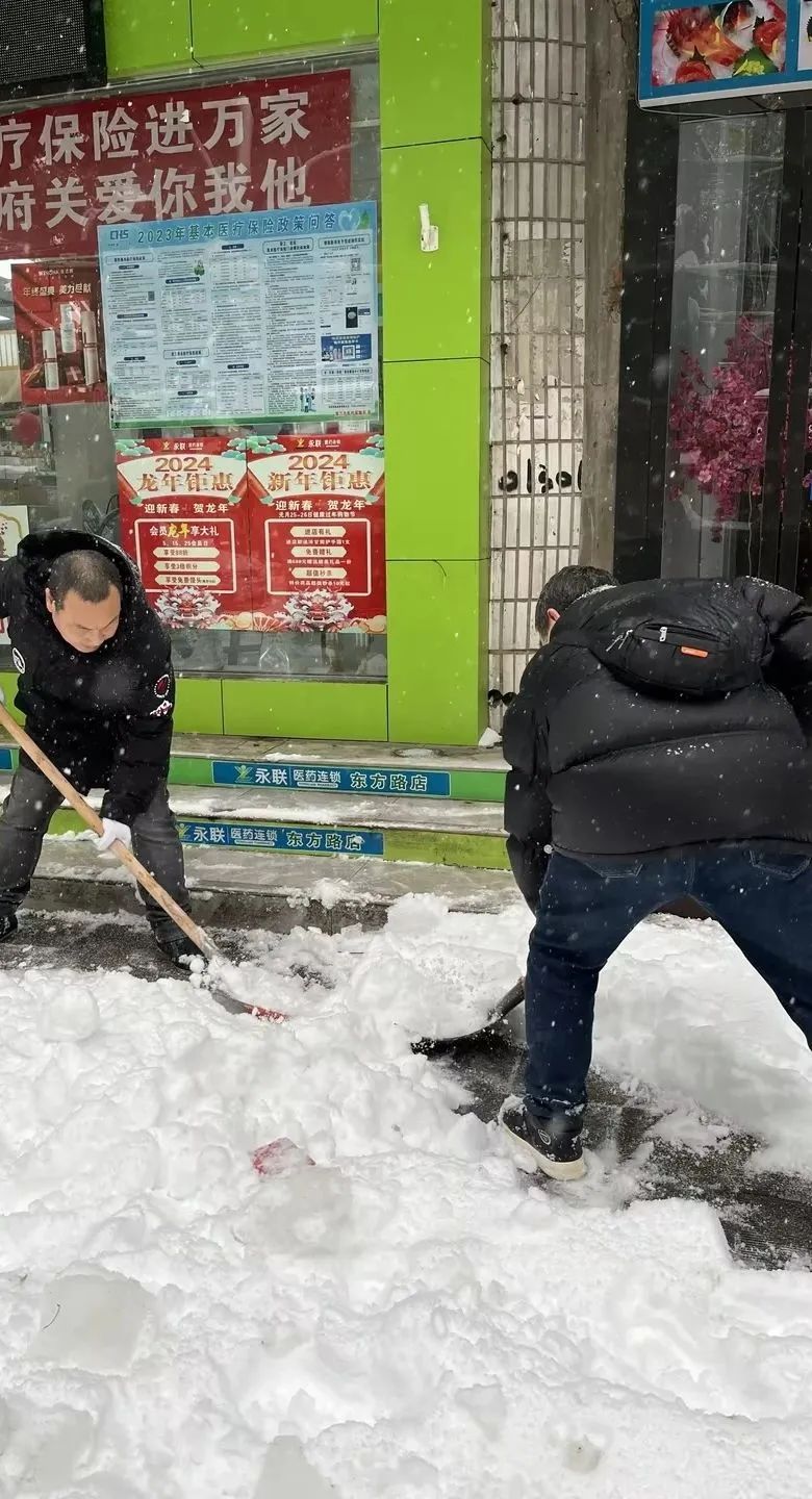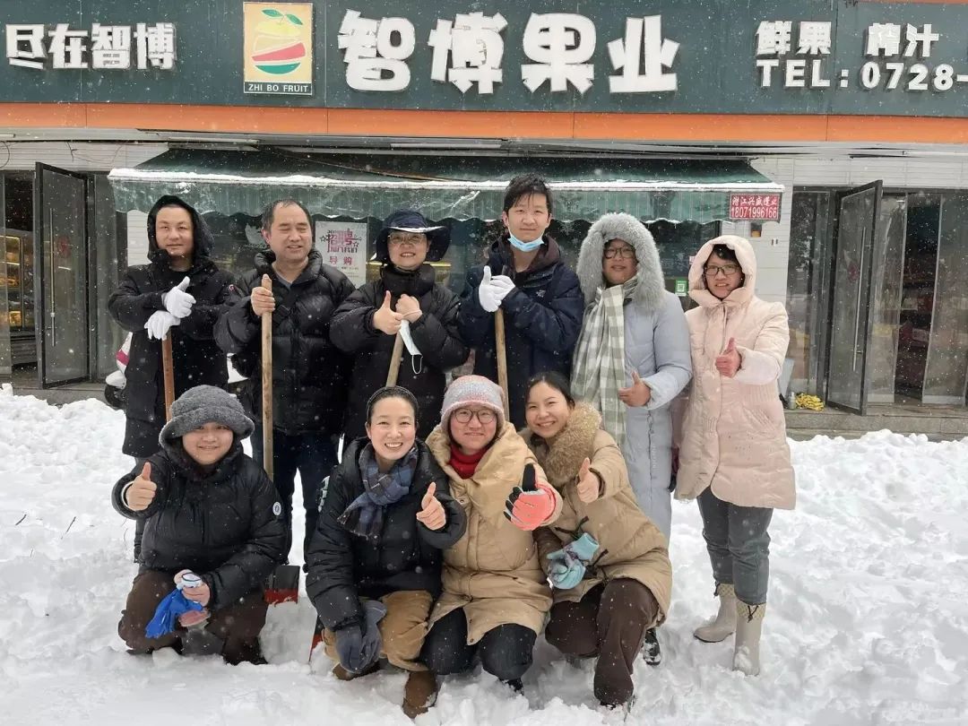 行动是最好的“融雪剂”奉献是最暖的“防寒衣”我院在潜教职工不畏严寒 团结协作挥锹扬铲 干劲十足