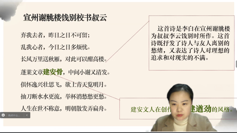 管理学院杨艳老师结合多年的一线教学经验,从参赛教师的教案格式、语音语调、表情和教学亮点上进行了点评与指导。