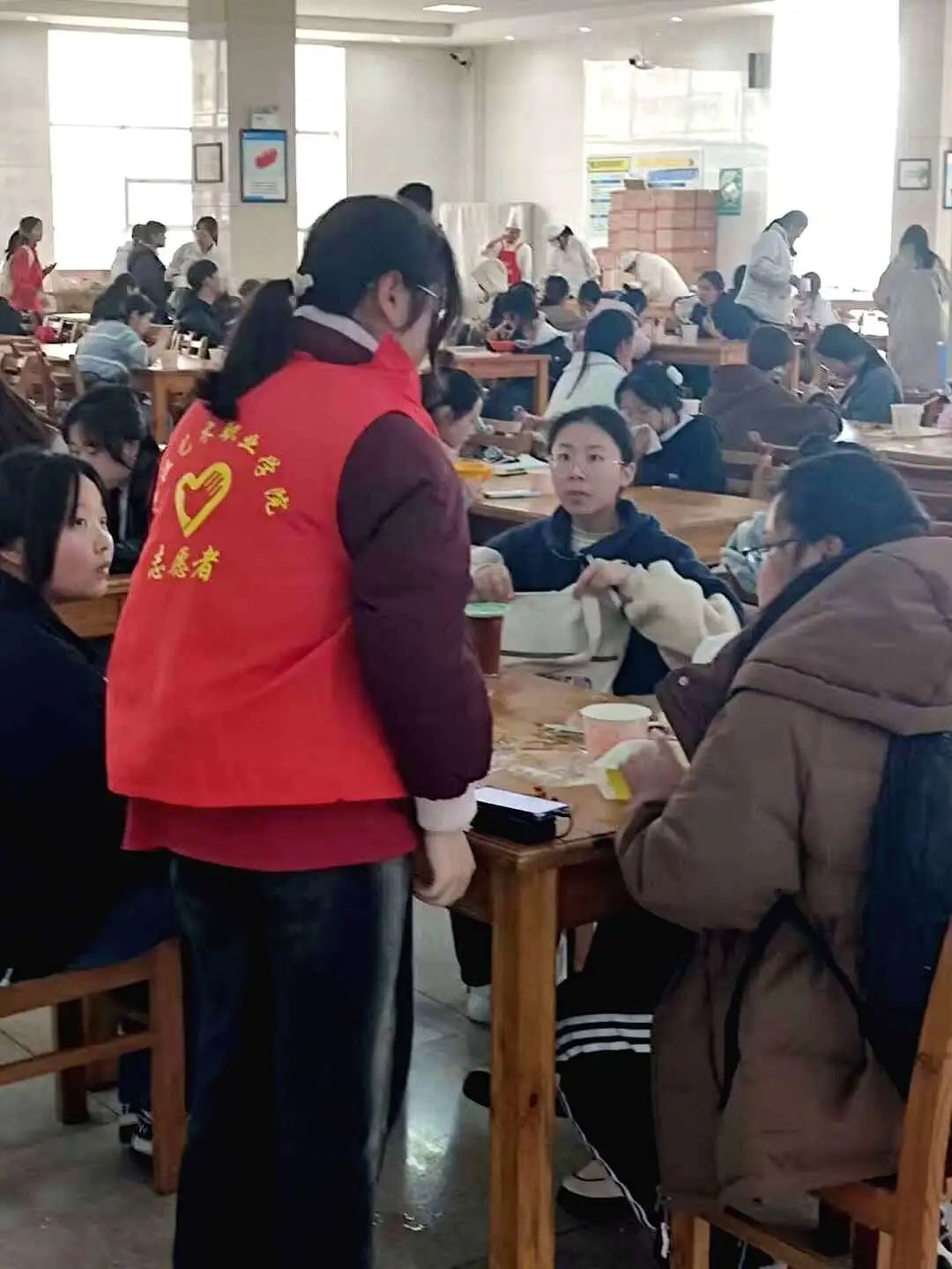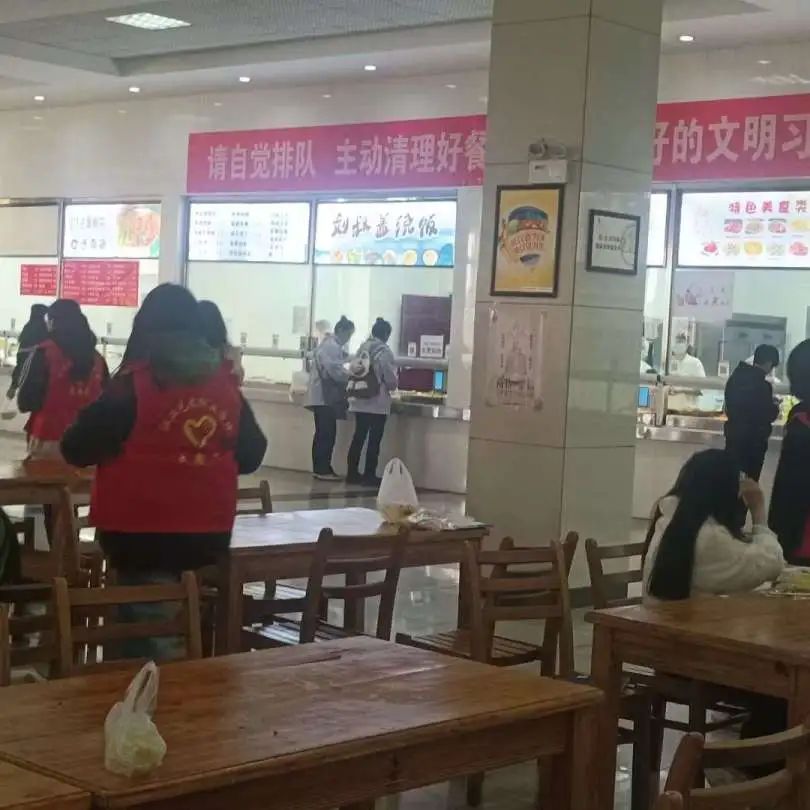 活动当天,志愿者们在食堂轮流站岗,以实际行动引导同学们勤俭节约、文明健康就餐,将制止餐饮浪费工作落到实处。同时,学院还悬挂了横幅,提醒同学们节约粮食,使“厉行节俭、反对浪费”的良好习惯蔚然成风。此外,倡议书也张贴在告示栏,让“克勤克俭、戒奢以俭”的价值理念深入人心。