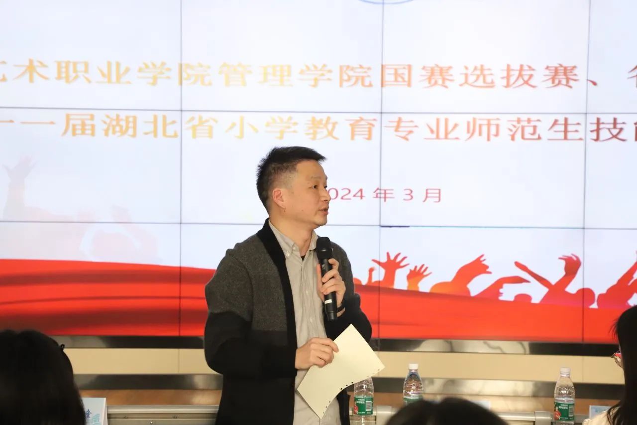 江汉艺术职业学院党委委员、副校长廖江涛老师向所有参赛老师和同学们表示祝贺。廖校长指出我们比赛成绩的取得印证了教师们的教学水平,老师和同学们的辛苦备赛经历也体现了江职坚毅的攀登精神。希望管院师生在未来的工作学习中更自信、更勇敢、更主动地表现自己,将事情落细、落小、落实。同时,廖校长鼓励教师们积极主动地投身各项大赛,从实现自身价值出发,成就欣欣向荣的管院,继续取得更加辉煌的成绩。