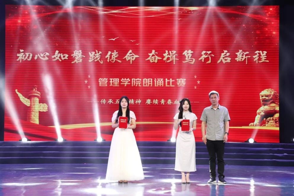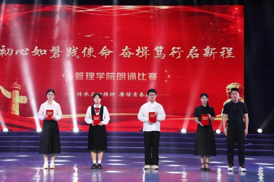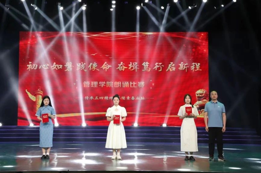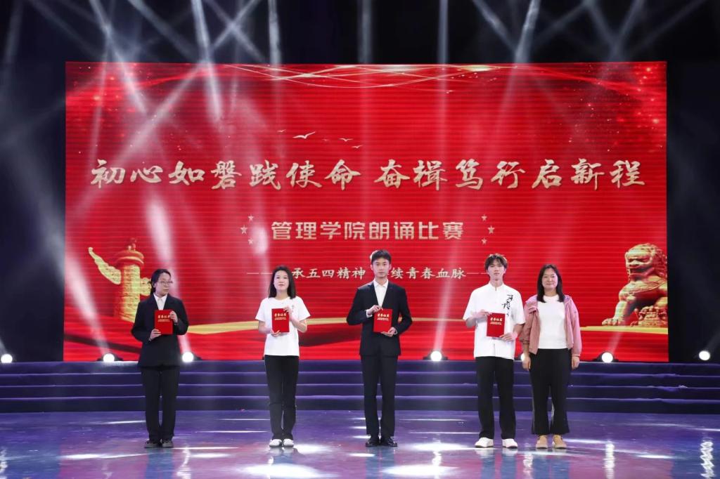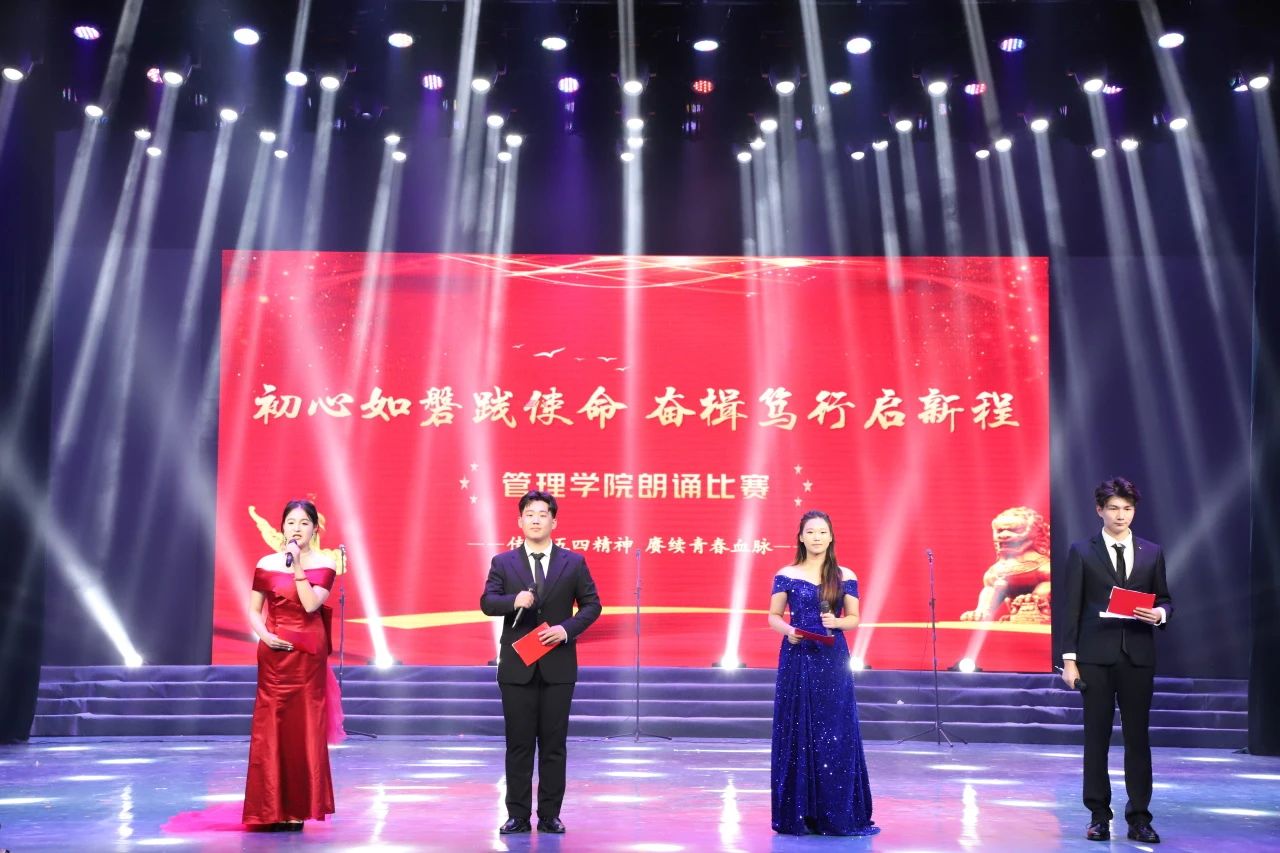 为丰富学生文化底蕴,加强管院学风建设,展示学生的诵读素养和精神风貌,管理学院于5月10日晚在风华楼剧场举办了以“初心如磐践使命,奋楫笃行启新程”为主题的朗诵比赛。