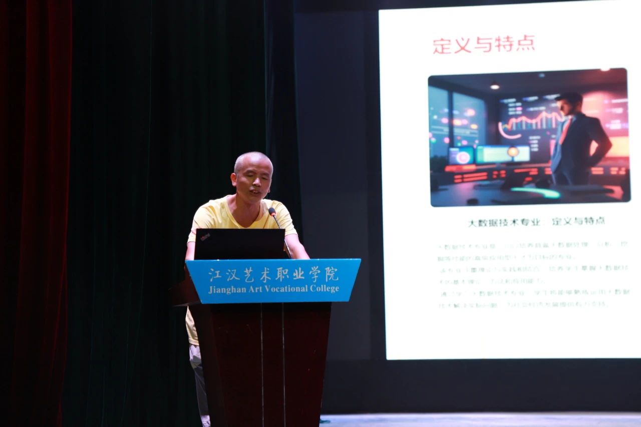 大数据技术专业负责人姜帆老师主要介绍了大数据技术概述、高职大数据技术专业课程体系和实践教学与实训基地情况,对师资力量、学术竞赛及就业前景作出概述。