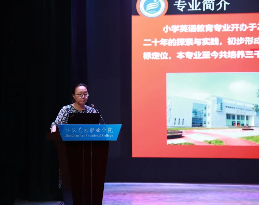 小学英语教育专业负责人梅娟老师围绕专业情况、教学内容及课程设置等方面展开介绍,激励同学们努力学习,积极向上。