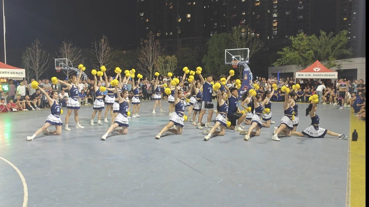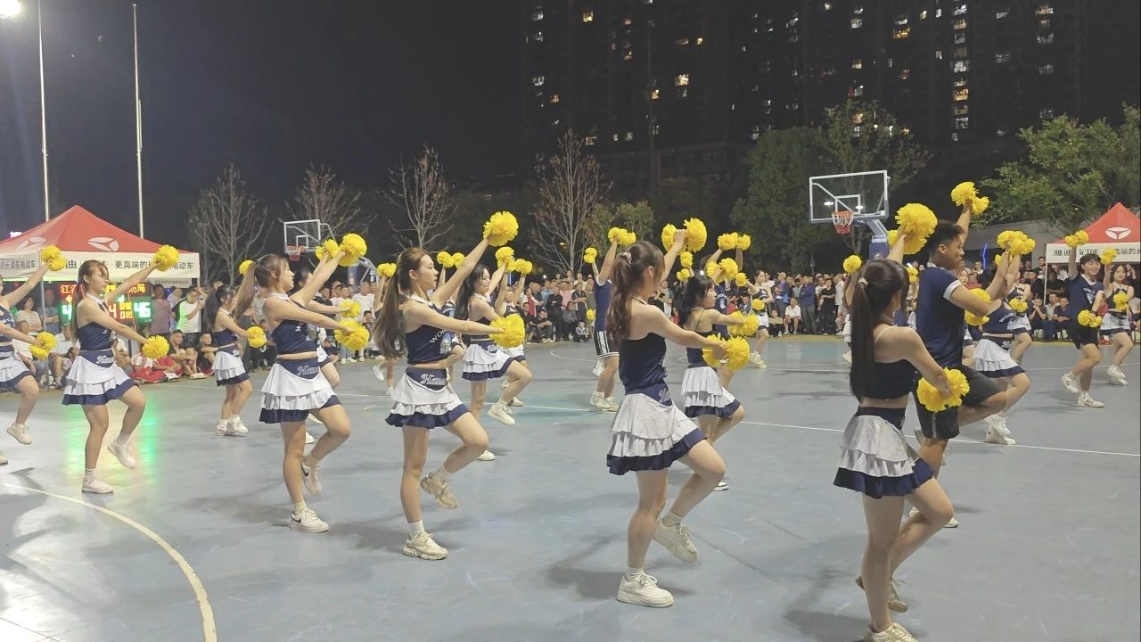 随着潜江市首届城市运动会篮球赛拉开帷幕 ,9月25日晚,管理学院健美操队的同学们满怀热情,积极投身到篮球赛事的加油助威活动中。