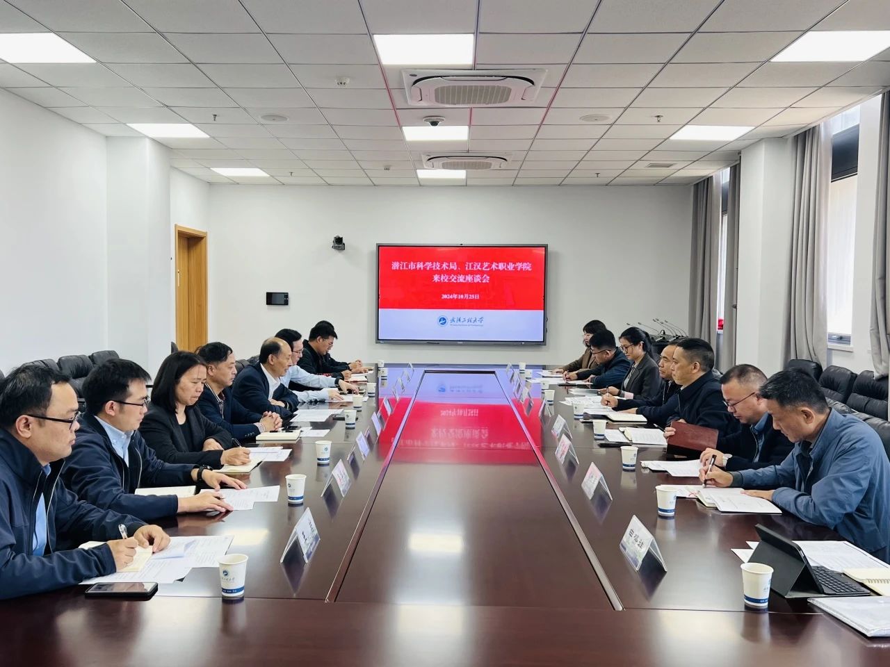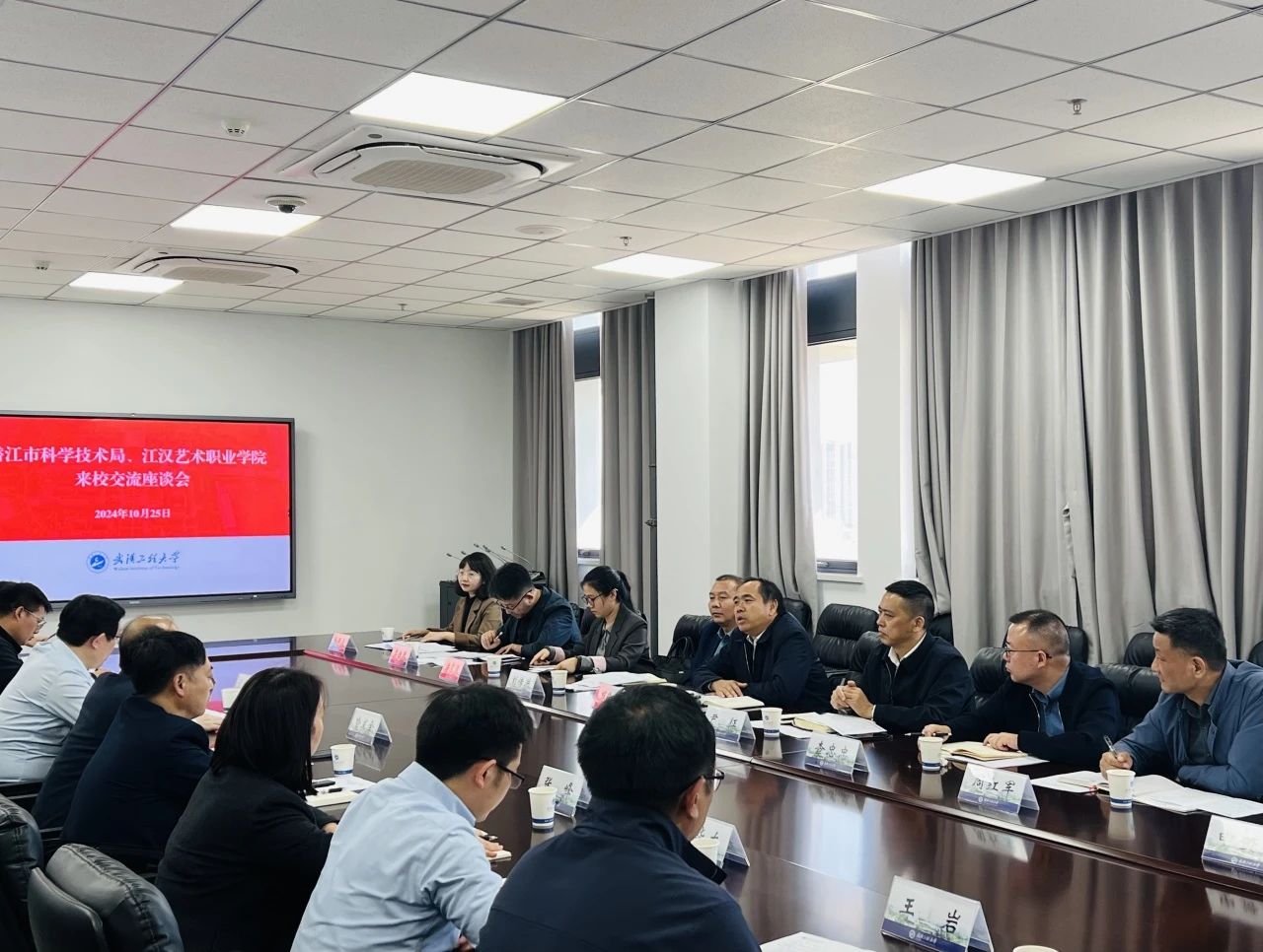 10月25日下午,一场聚焦职普融通、产教融合,旨在深化服务地方重点产业专业建设的座谈会在武汉工程大学顺利举行。武汉工程大学党委常委、副校长喻发全,潜江市科技局党组书记、局长尹征,江汉艺术职业学院党委副书记、校长程伦嵩出席座谈会。武汉工程大学与江汉艺术职业学院就校校合作进行了深入交流和探讨。