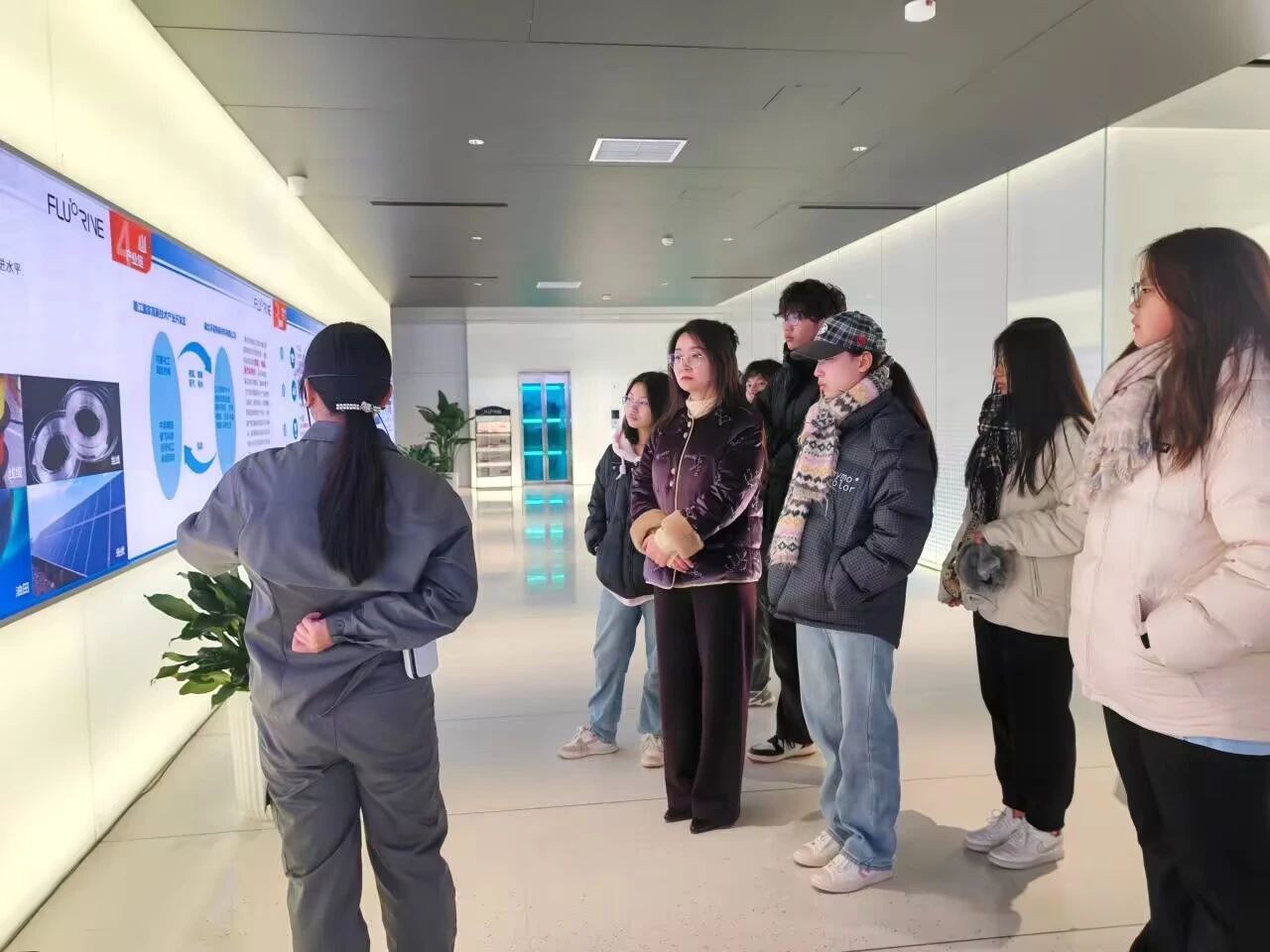在两家企业展厅,负责人亲自引导学生参观。他们通过细致的讲解,辅以丰富的实物与多媒体展示,系统回顾了企业的发展历程与成就。从创业初期的筚路蓝缕,到如今的行业领先地位,每一步都记录着企业的奋斗与突破。同时,通过互动区域,学生们直观了解了化工产品的生产工艺及应用实例,深刻感受到了企业的技术创新力与社会责任感。整个参观过程严谨有序,为学生们提供了深入了解化工领域前沿动态与企业文化的宝贵机会。