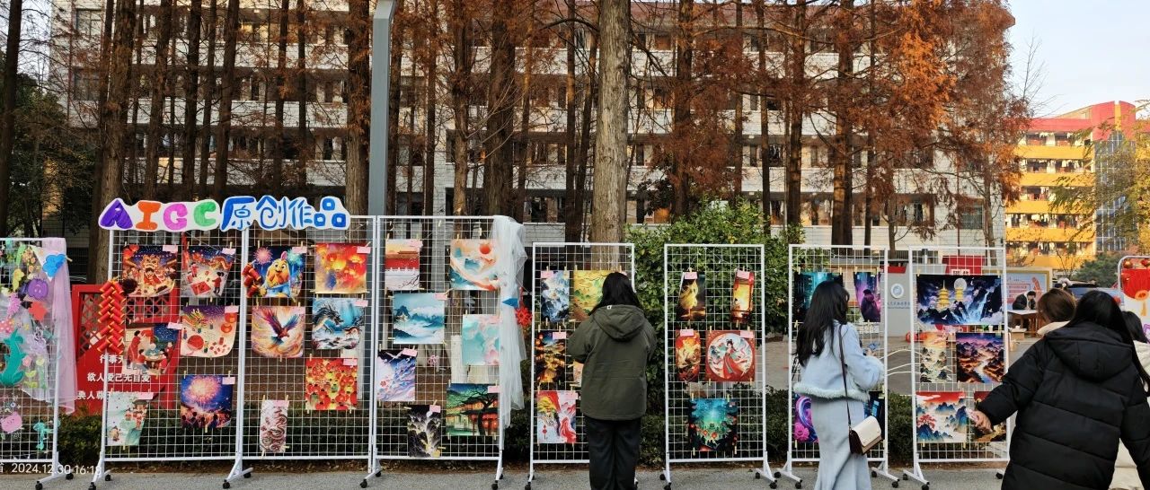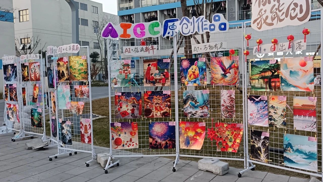 步入活动现场,由人工智能专业 2024 级新生的“文生图”主题作品展拉开了本次游园会的序幕,这些作品凝聚着同学们的奇思妙想与专业才华,通过 AIGC 技术将文字转化为绚丽多彩的图像,展现出科技与艺术的完美融合,为新年的到来增添了一抹别样的色彩。