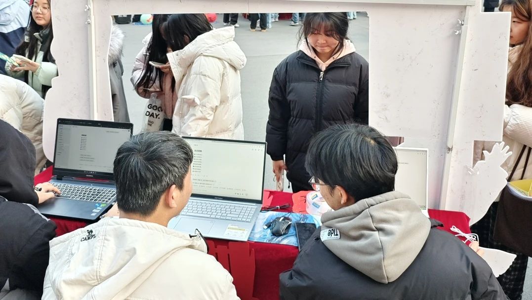 繁华巳锦:人工智能专业的同学使用AIGC工具为参与者现场生成个性“藏头诗”。