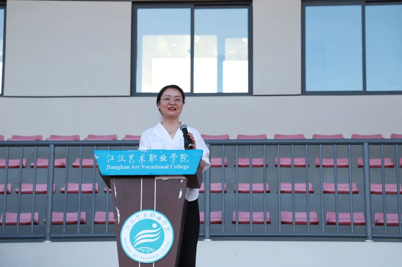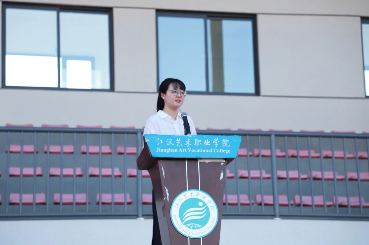 新教师代表周冰琪向新生表示欢迎,她鼓励同学们珍惜时光、专注学业、勇于尝试,在探索中积累经验、认识自我,期待大家三年后学有所成,成长为坚定自信的自己。