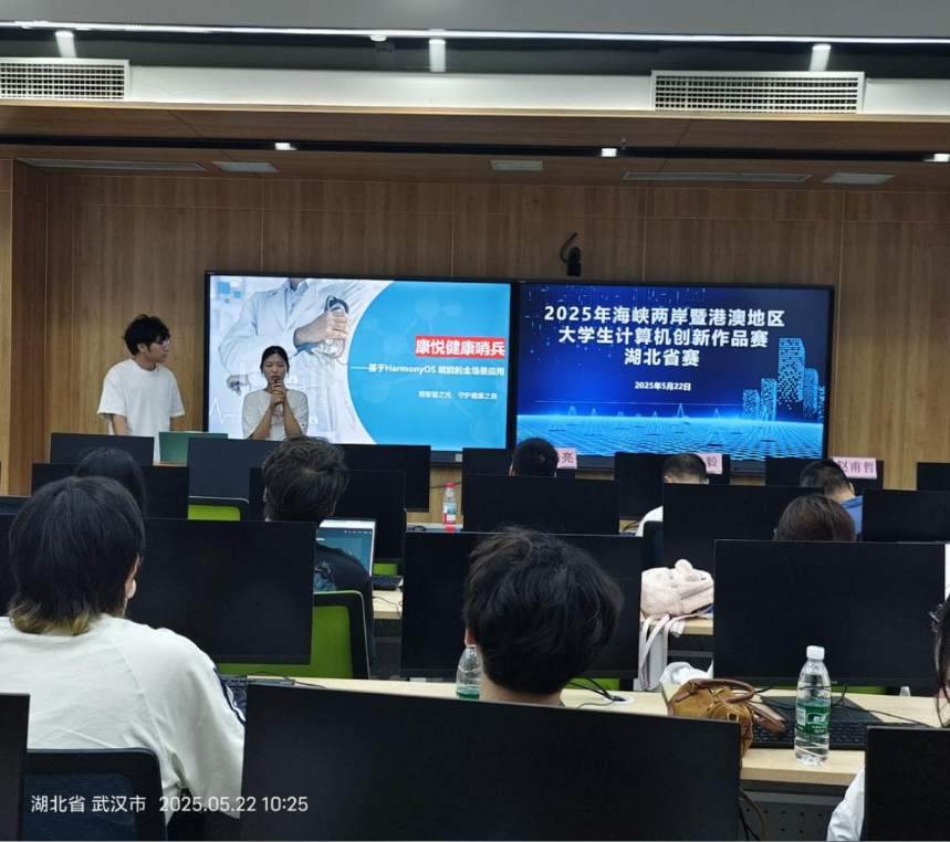 2025年5月22日在武汉软件工程职业学院举办的《2025年海峡两岸暨港澳地区大学生计算机创新作品赛湖北赛区选拔赛》,我校管理学院软件技术专业学生参赛作品《康悦健康哨兵-基于HarmonyOS赋能的全场景应用》与省内兄弟院校同台竞技喜获三等奖,参赛学生:张涵予、郭燚文、岳诗涵,指导教师:闵红伟、罗俊,这也是我校软件技术专业首次参与该赛事并一举获奖。