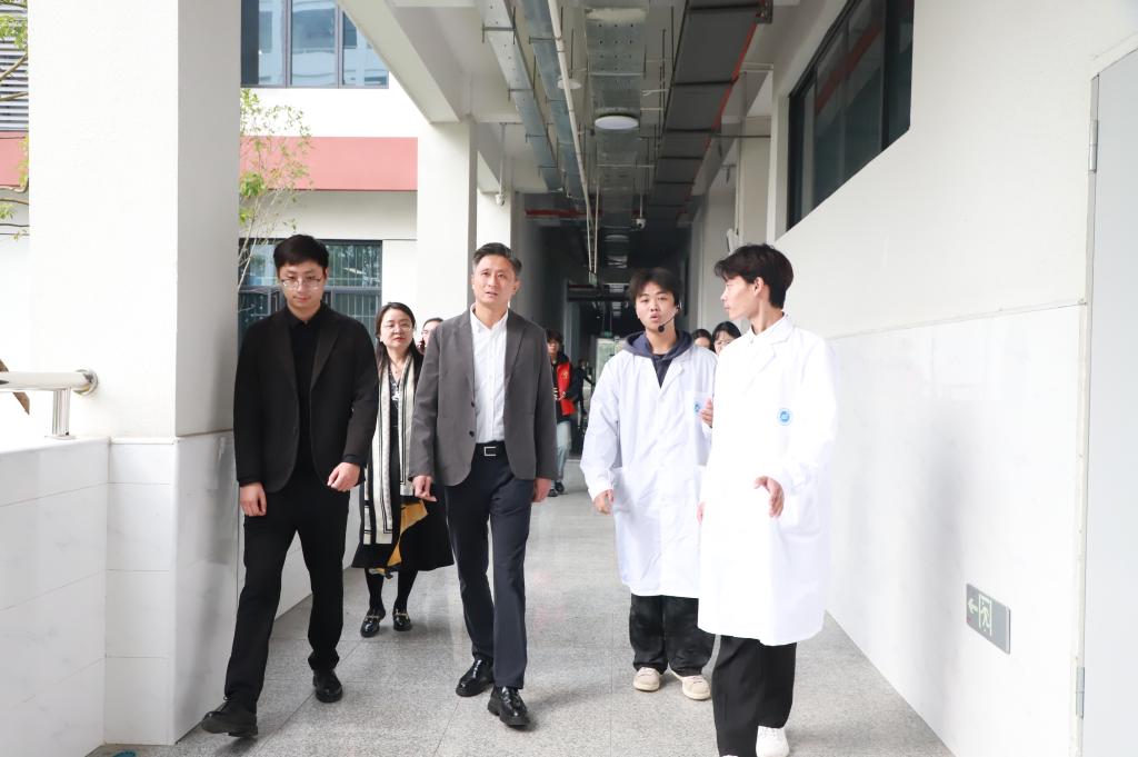 应用化工技术专业许忠林、王杰同学详细讲解实验室的布局与功能。张灿副处长对学生的实验操作提出指导建议,并询问了学生的课程衔接情况、专业认知及未来规划。