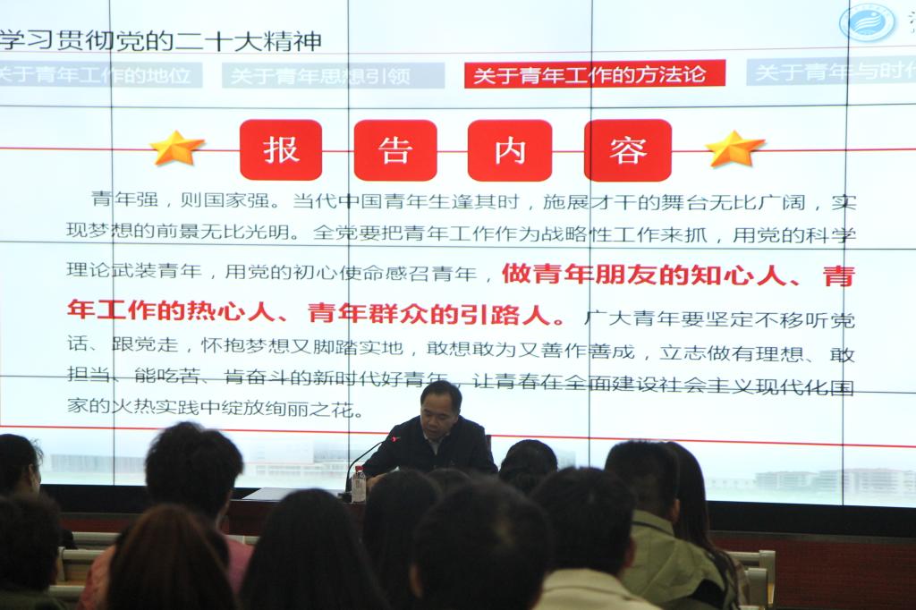 程院长从三个方面对新时代青年工作进行了系统阐述,一是二十大报告关于青年工作的重要论述,二是青年在国家发展中的地位和作用,三是青年如何在新时代挺膺担当。