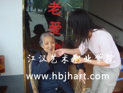 4月21日,美术系团总支、06装潢班团支部组织了一次青年志愿者服务活动,到市敬老院慰问老人。在慰问活动中,同学们打扫卫生,整理房间,给老人梳头,发放带去的水果,为老人表演了丰富的文艺节目,并发挥专业特长,以速写等形式为老人们画像,和老人们度过了半天难忘的时光。