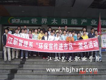 为促进青年志愿者积极投身社会实践活动,充分发挥自身专业优势,为建设绿色潜江做贡献,4月22日,管理系团总支组织青年志愿者走上潜江街头开展了“环保宣传进市区大型签名活动”。