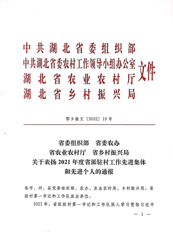 近日,省委组织部、省委农办、省农业农村厅、省乡村振兴局联合发文,对2021年度工作实绩突出的派出单位、驻村工作队、驻村第一书记(工作队长)和驻村工作队员予以通报表扬,江汉艺术职业学院驻村工作队被评为“突出驻村工作队”。