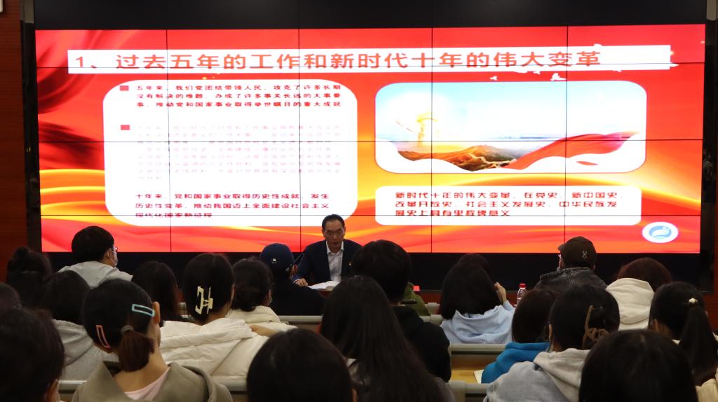 “中国共产党第二十次全国代表大会,是在全党全国各族人民迈上全面建设社会主义现代化国家新征程、向第二个百年奋斗目标进军的关键时刻召开的一次十分重要的大会。”宣讲会上,李飞从大会概况、大会报告的具体内容、大会的意义、结语四个部分,为学员们进行了详细的讲解。