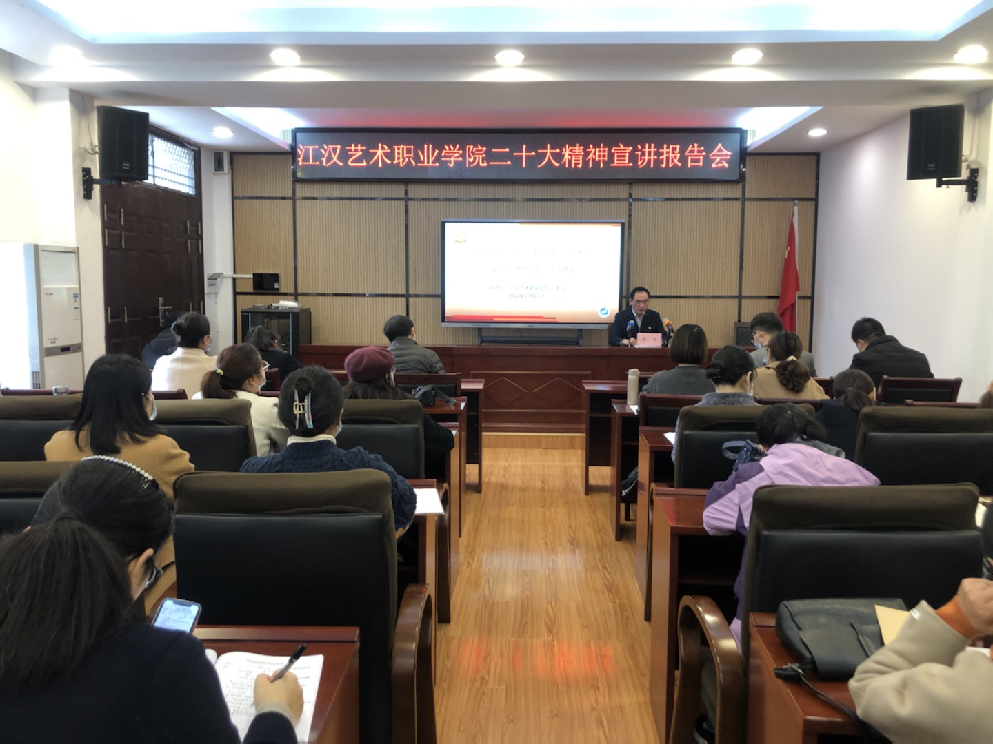 党委宣传部、党政办、学工部、团委有关同志参加宣讲会。