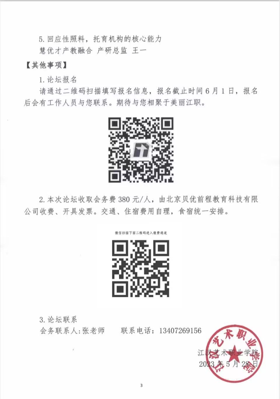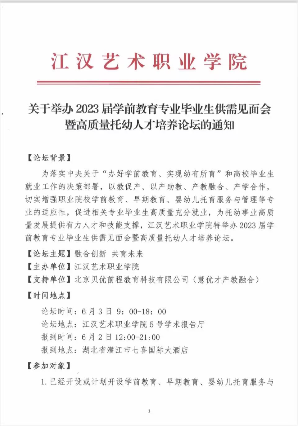 江汉艺术职业学院关于举办2023届学前教育专业毕业生供需见面会暨高质量托幼人才培养论坛的通知
