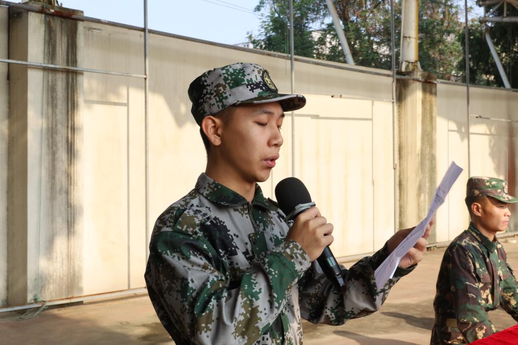 学生代表汪浩然号召全体新生在军训期间严格要求自己,积极参与各项训练,锤炼意志,锻造团队合作能力,争取取得优异成绩。教官代表在会上强调了军训的重要性,并嘱托新生要以积极的态度参与到军训项目中,全身心地投入训练,在军训期间严守纪律、相互促进,努力完成各项军训任务。