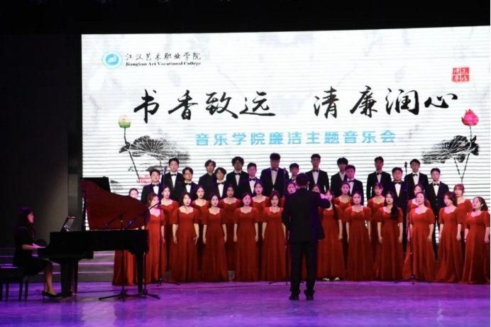 本次音乐会围绕廉洁文化主题,设置多种音乐演奏曲目,参演师生通过挖掘廉洁文化元素,深入创作和选曲。民乐合奏《盛世国乐》,以其宏大的气势和丰富的表现力,展现了中华民族悠久的历史和灿烂的文化;合唱《敕勒歌》旋律激昂,唤起了人们对美好生活的向往和对大好河山的热爱;钢琴独奏中的《莲》,优美的旋律和精湛的技巧,展现了钢琴艺术的魅力;小组唱《清风颂》曲风清新、寓意深远;钢琴独奏《渔光曲》悠扬的旋律和深情的演奏,让人仿佛置身于美丽的江南水乡;竹笛节目《江汉平原好风光》则以其曼妙的笛声和生动的表现,展现了江汉平原的美丽风光……