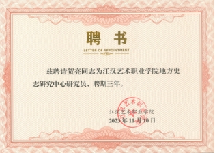 潜江市历史文化研究中心研究员贺亮,受聘成为江职地方史志研究中心研究员。