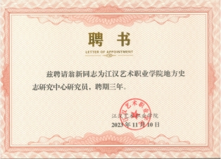 潜江市图书馆副馆长翁新同志,受聘成为江职地方史志研究中心研究员。