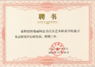潜江市委宣传部副部长侯艳丽,受聘成为江职地方史志研究中心研究员。