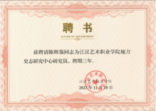 潜江市委党校教授陈辉强,受聘成为江职地方史志研究中心研究员。