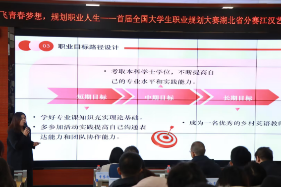 24日,为贯彻落实党中央、国务院关于高校毕业生就业工作决策部署,进一步普及大学生职业生涯规划知识,指导大学生科学合理地规划大学学习与生活,树立正确的成才观、就业观,提高其就业技能与实践能力,顺利实现高质量充分就业,我校在综合楼200教室,举办了学校首届全国大学生职业规划大赛。