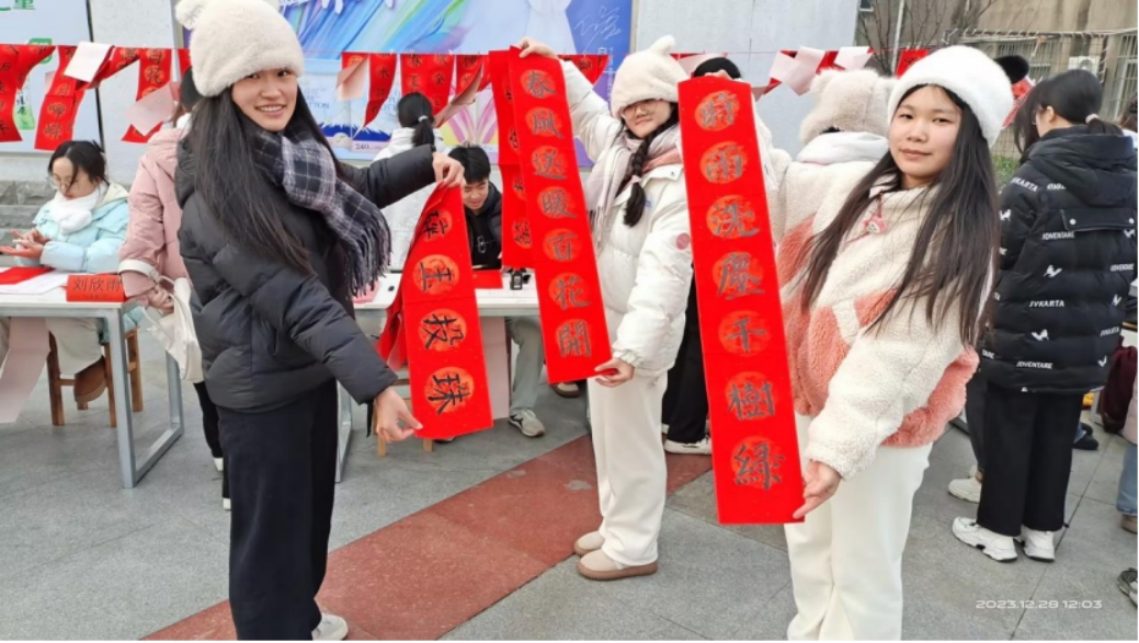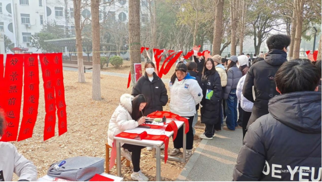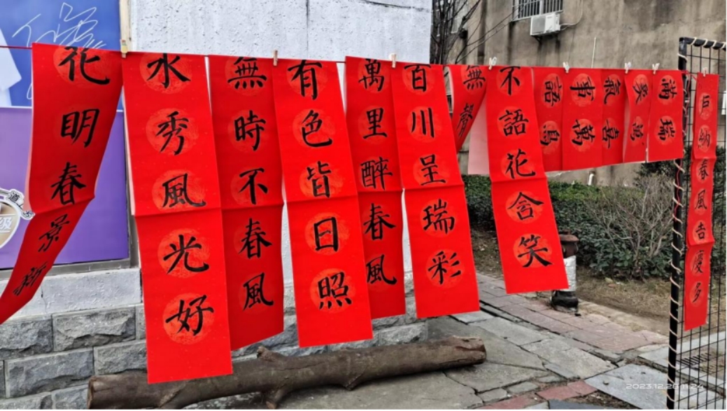 活动现场,老师和同学们热情饱满、挥毫泼墨,将真诚的祝福付诸笔端,一幅幅喜庆吉祥、祝福满满的春联写出了广大师生对美好生活的憧憬和期待,活动现场吸引了众多领导、老师和学生的观看参与,充满着喜气洋洋的景象。
