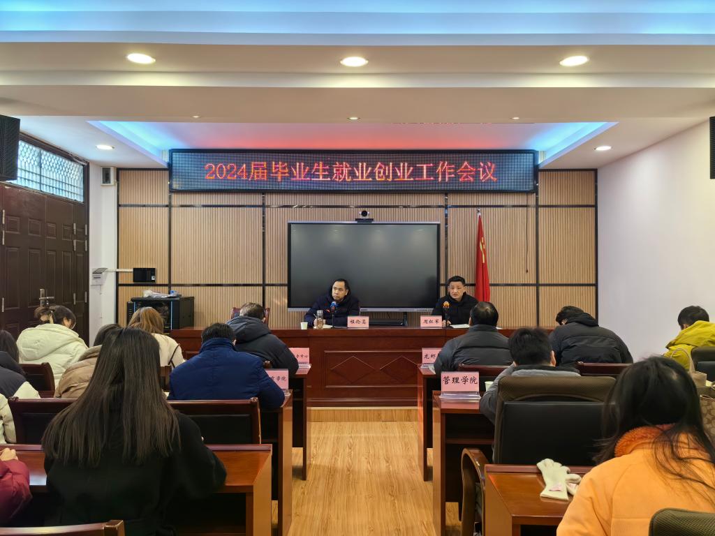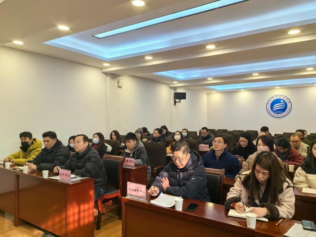 为深入学习贯彻党的二十大精神,落实党中央、国务院“稳就业”“保就业”决策部署,认真总结我校2023届毕业生就业工作,深入分析我校毕业生就业形势,安排部署2024届毕业生就业创业工作,1月8日,学校召开2024届毕业生就业创业工作专题会议,党委副书记、院长程伦嵩,院务委员周红军,就业指导中心及各二级学院相关工作负责人参加会议。