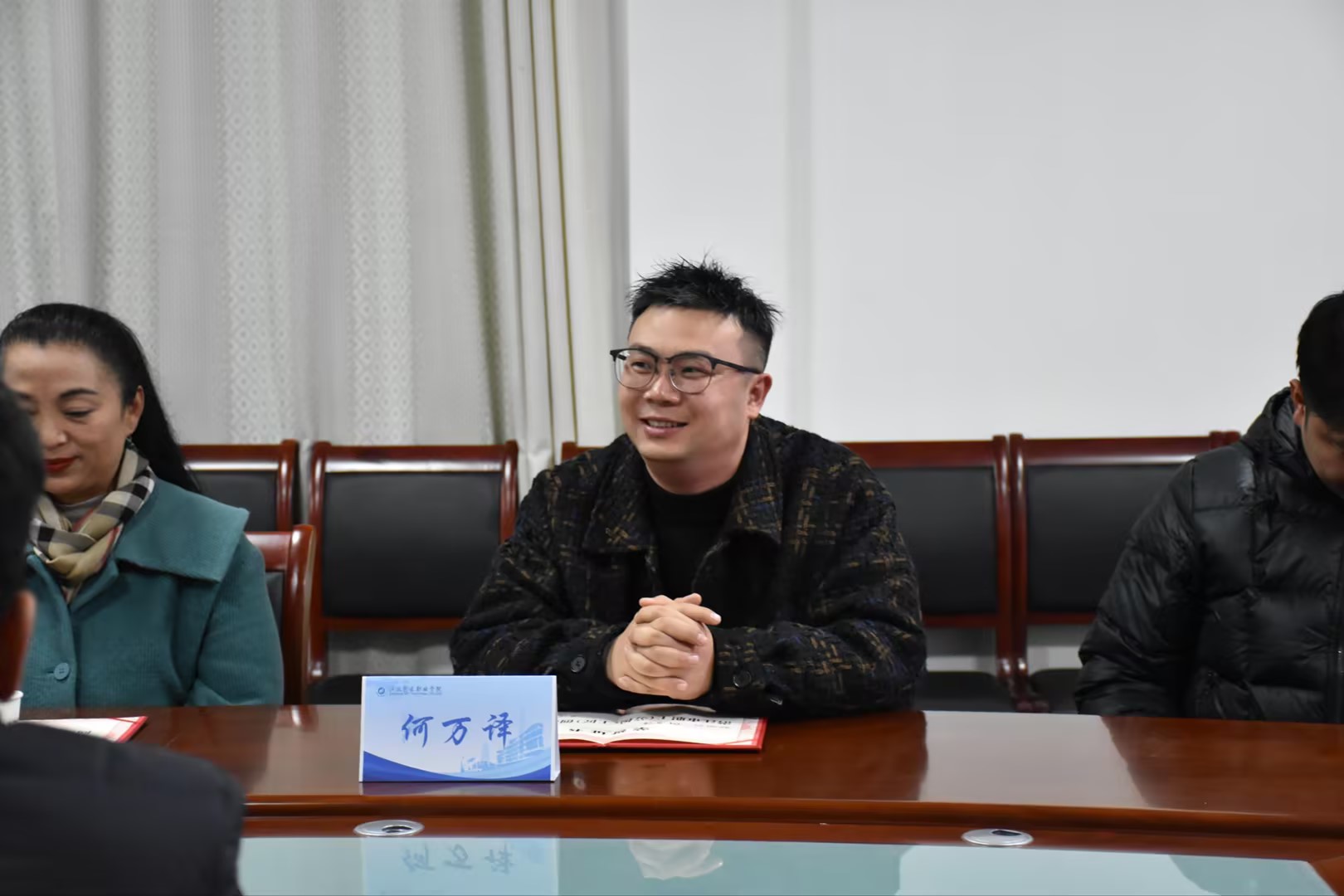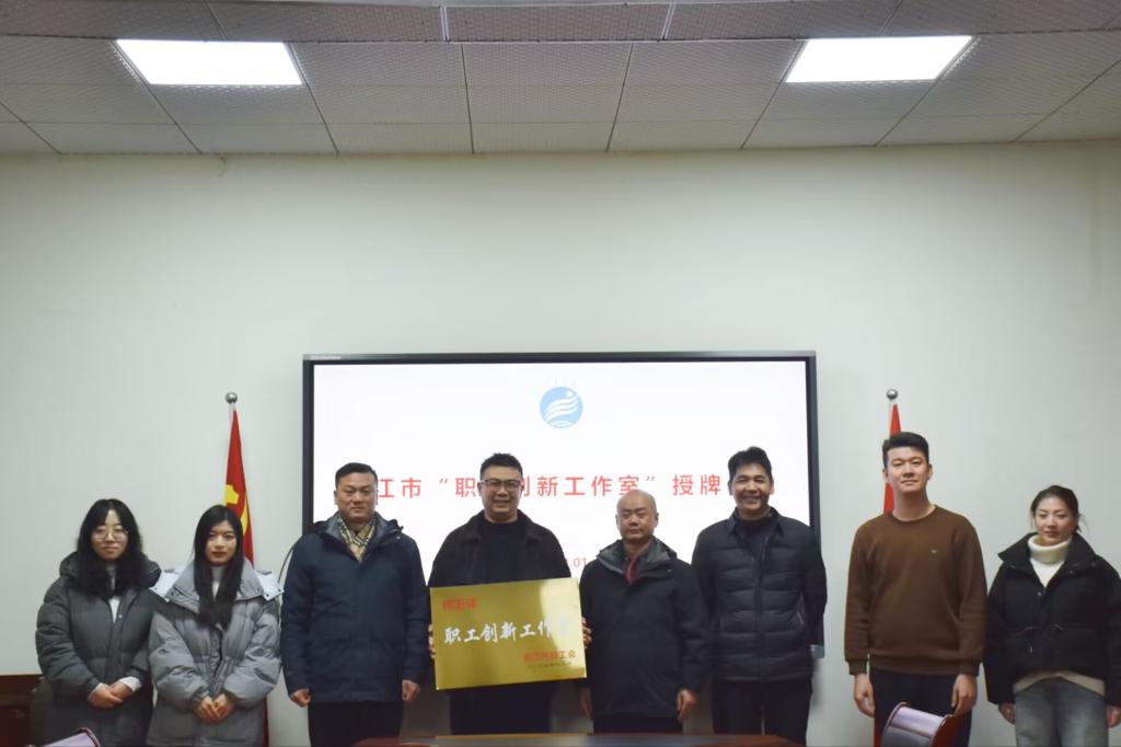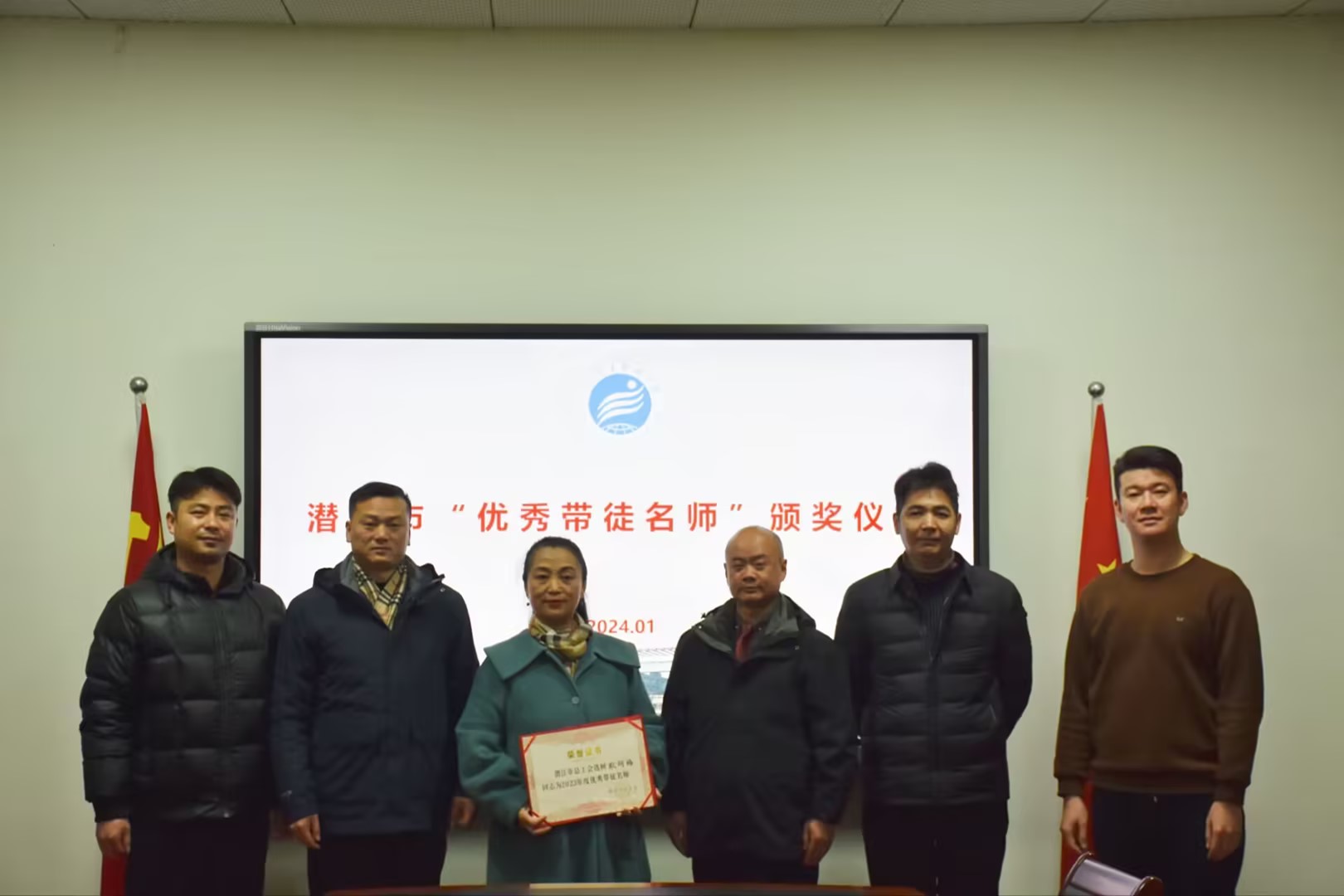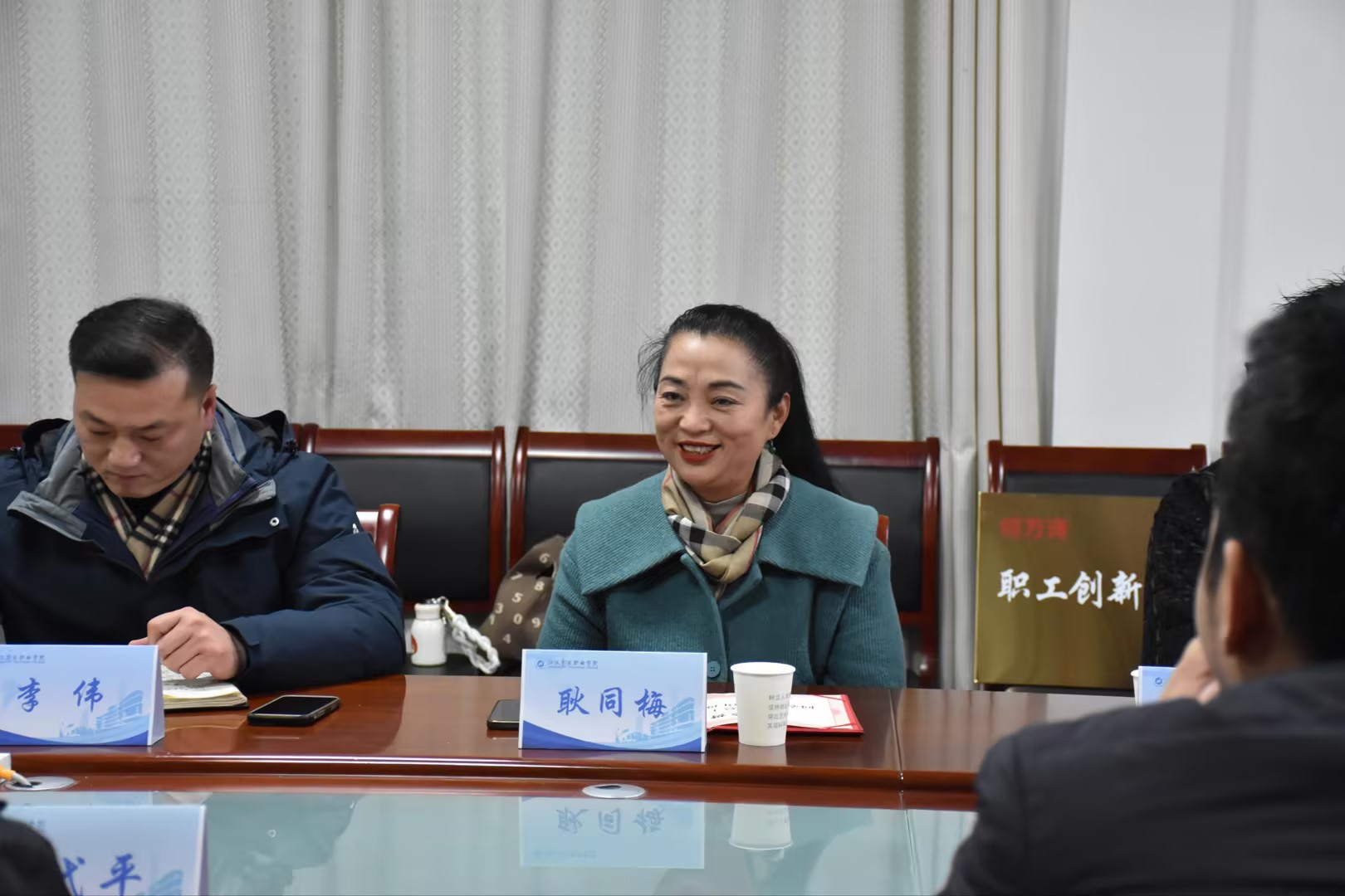 1月16日下午,潜江市总工会党组成员杨代平主任一行来到我校,在综合楼二号会议室举行潜江市“职工创新工作室”授牌仪式和“优秀带徒名师”荣誉证书颁发仪式,为音乐学院院长耿同梅、设计学院副院长何万译颁发荣誉证书。工会主席李伟、副主席郝艳亮出席颁奖仪式。