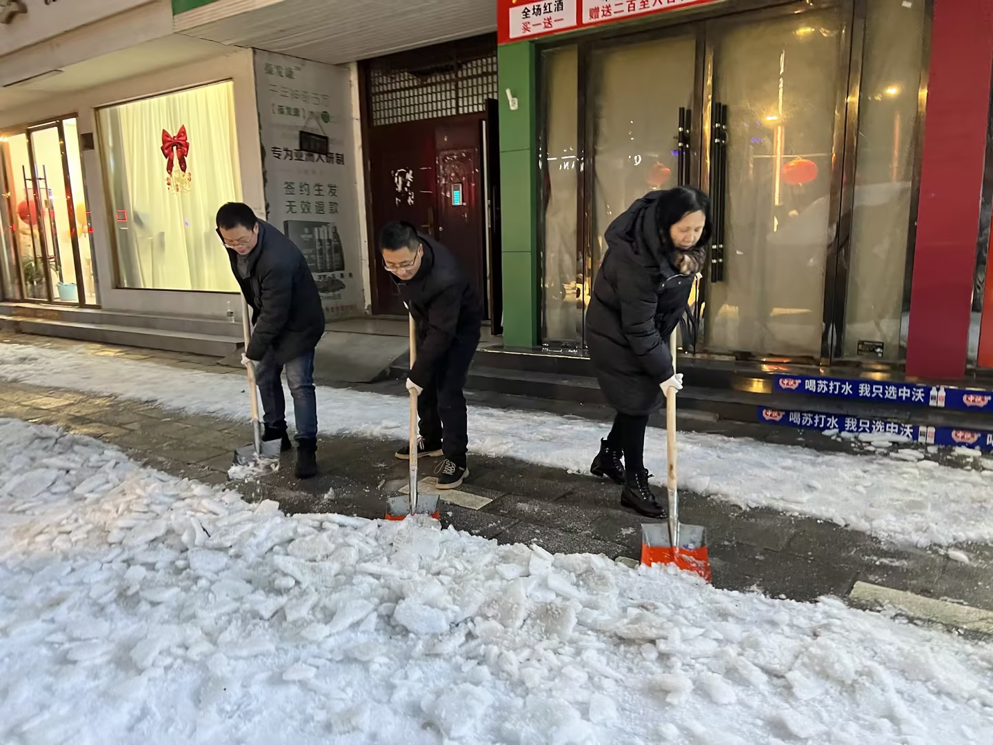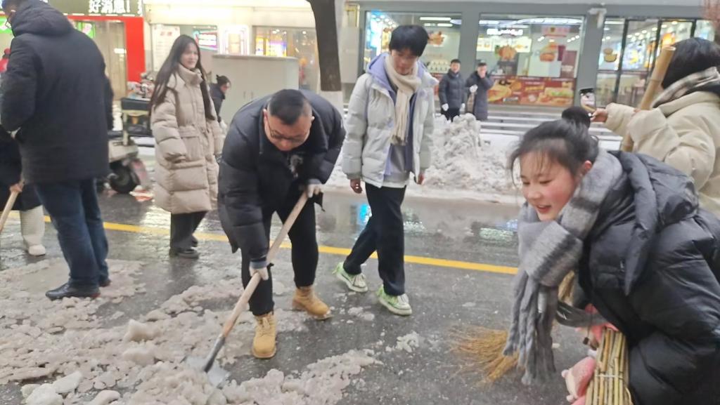 在保卫处的总体协调安排下,教职工迅速到达“门前五包”区域及责任路段。清雪工作高效、有序进行。大家手持铁锹等工具,分工协作,一条条道路逐渐恢复原貌。参与志愿者纷纷表示,虽然辛苦,但能为师生、为市民创造一个安全、洁净的出行环境,深感欣慰与自豪。