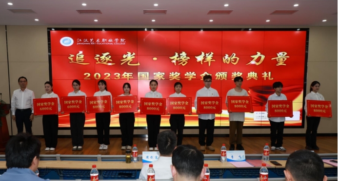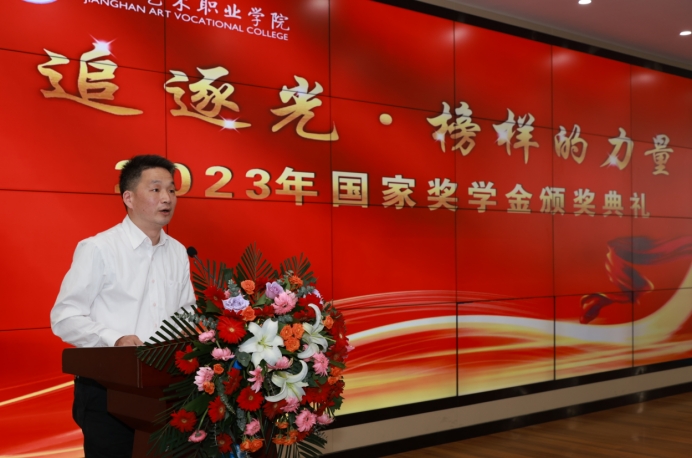 学校按照《江汉艺术职业学院学院国家奖学金评定办法》《江汉艺术职业学院国家励志奖学金评定办法》等文件要求,经学生申请、院部选拔、学校评审推荐,再经上级教育主管部门审核批准,最终有13名学生获得国家奖学金,344名学生获得国家励志奖学金。党委学工部副部长张如欣宣读了表彰决定,党委书记李飞、纪委书记黄超、党委委员周剑波分别为国家奖学金、国家励志奖学金的部分学生代表颁奖。